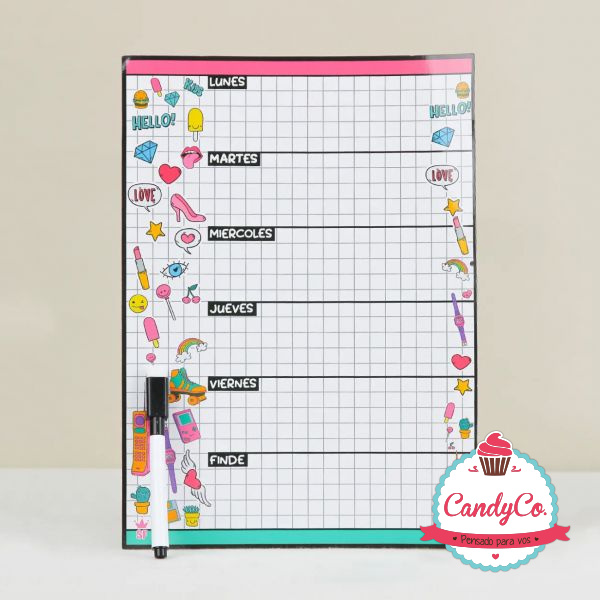 Planificador, Organizador Semanal Magnético Estampado con Diseño Cuadriculado