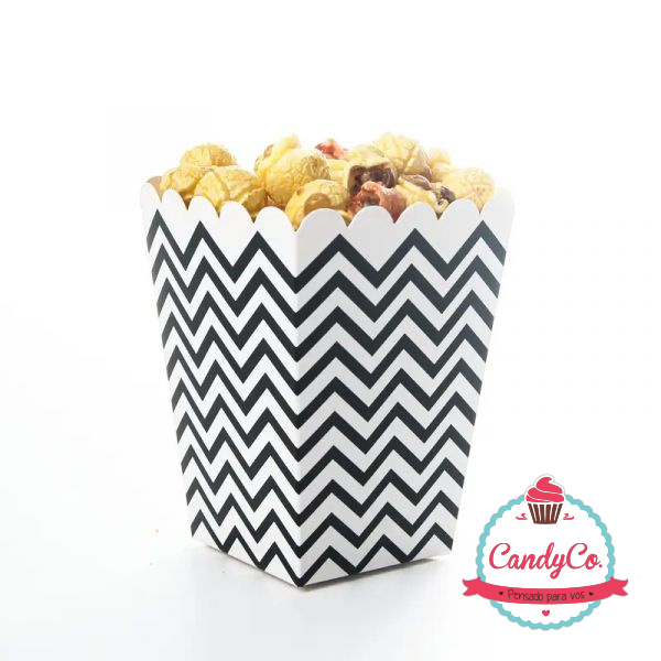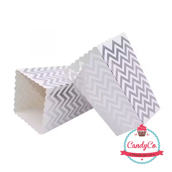 Caja de Cartón Chica con Diseño Zig Zag para Pochoclos, Palomitas de Maiz 5X5X11Cm