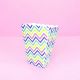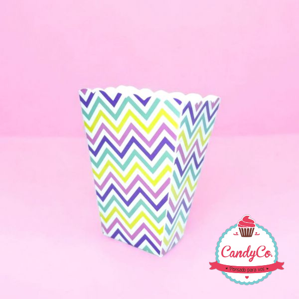 Caja de Cartón Mediana con Diseño Multicolor Pastel Zig Zag para Pochoclos, Palomitas de Maiz 13X7X14Cm