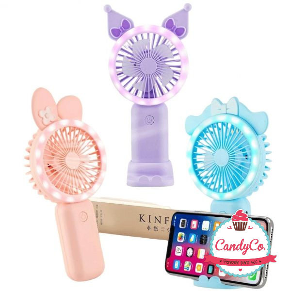 Ventilador Usb con Luz y Diseño de Kuromi, My Melody, Cinnamoroll con Base