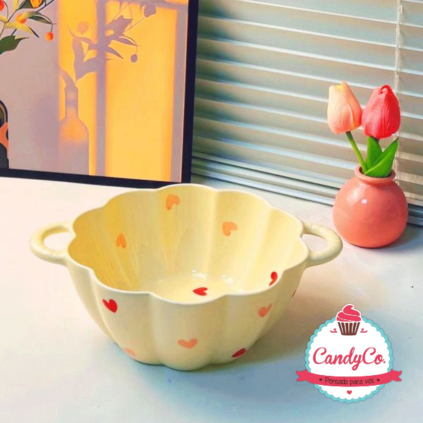 Bowl, Ensaladera de Cerámica con Diseño de Corazones y Doble Asas