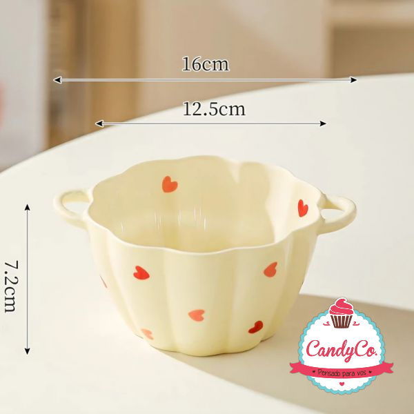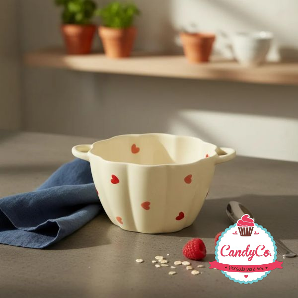 Bowl Chico de Cerámica con Diseño de Corazones y Doble Manija