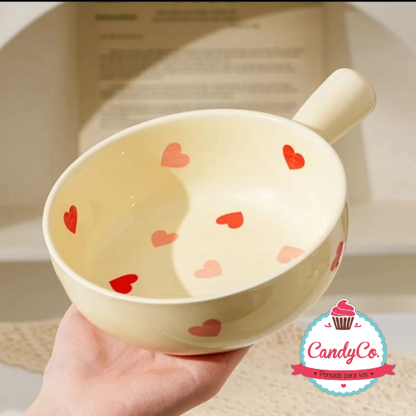 Bowl de Cerámica con Diseño de Corazones y Manija