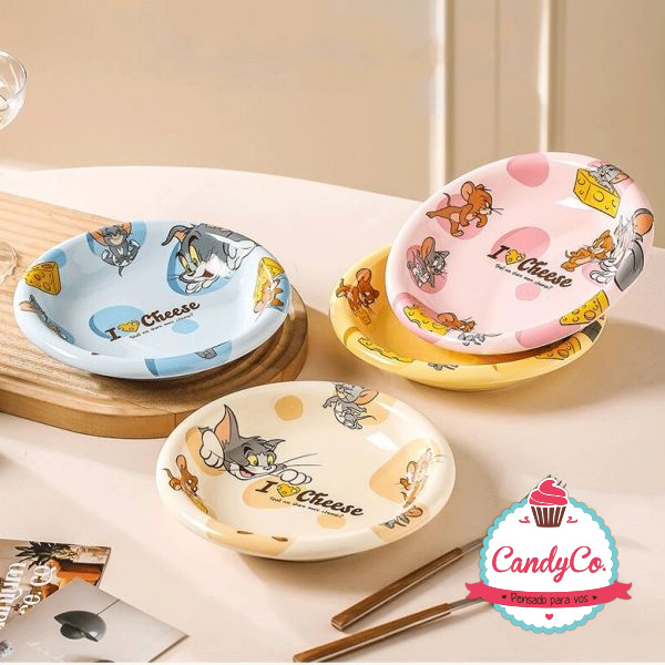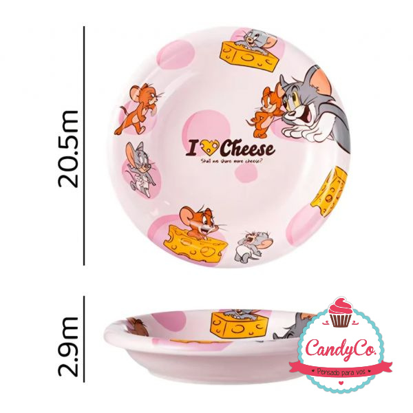 Plato Hondo de Cerámica con Diseño de Tom y Jerry, I Love Cheese