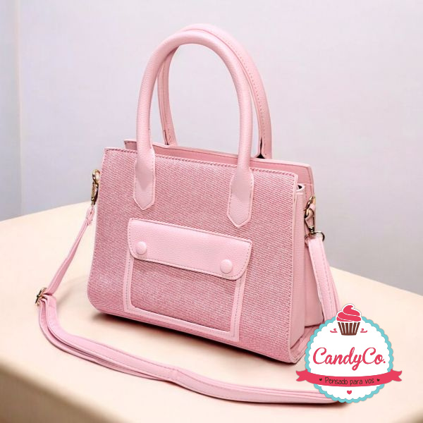Cartera, Bandolera Lisa Forrada con Detalles de Cuerina y Correa
