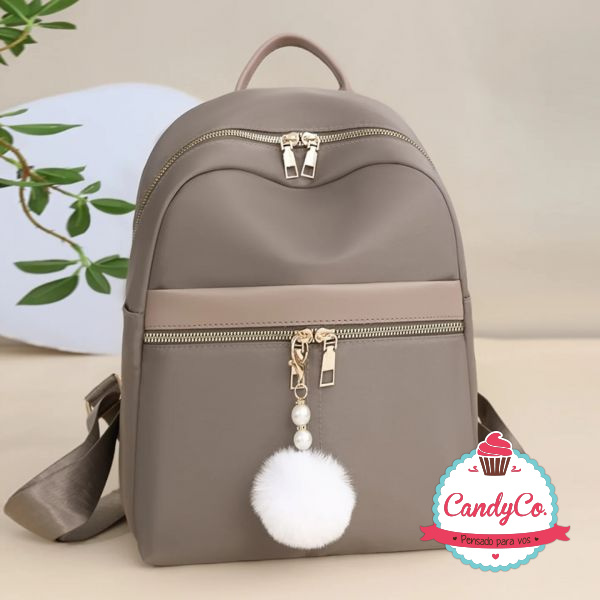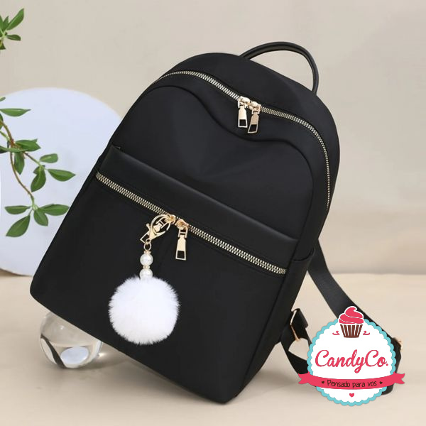Mochila Lisa con Dije Pompón con Perlas y Strass