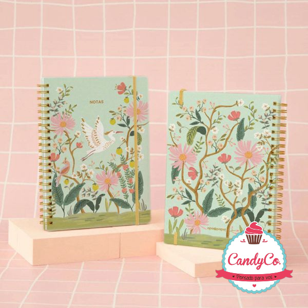 Cuaderno Grande A4 Tapa Dura Anillado Estampado con Detalles Metalizados