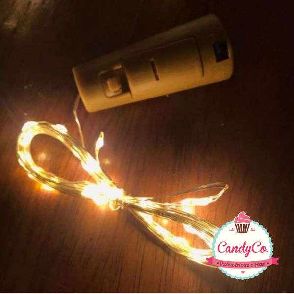 Corcho con Hilo Led Amarillo Cálido Luces a Pila Reloj 2M