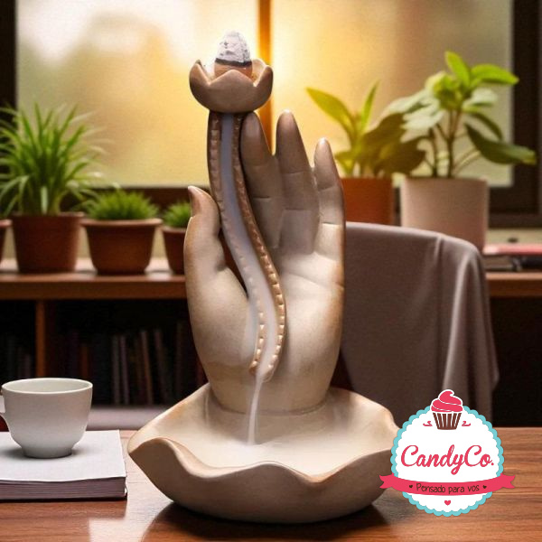 Cascada de Humo Mano y Flor Esmaltada Importada Grande