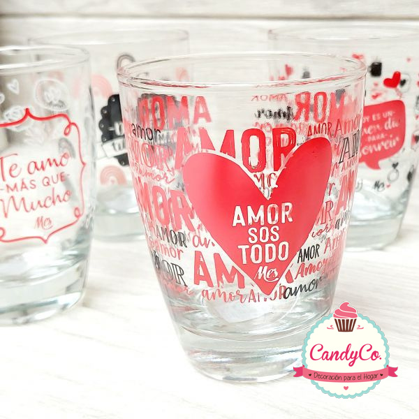 Vaso de Vidrio con Estampa del Día de los Enamorados