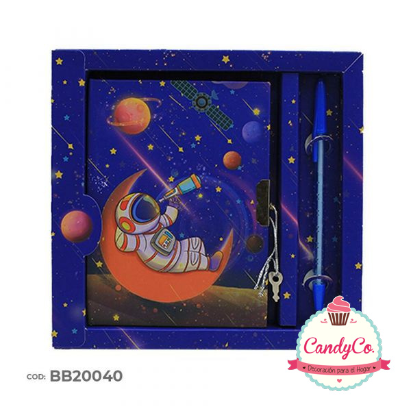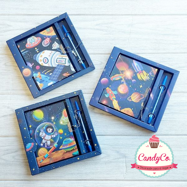 Set de Diario y Lapicera en Caja con Diseño de Astronauta, Espacio