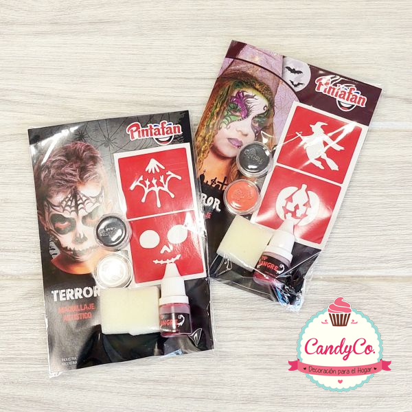 Set de Maquillaje, Pinturas Faciales X2 y Sangre Falsa Halloween Pintafan