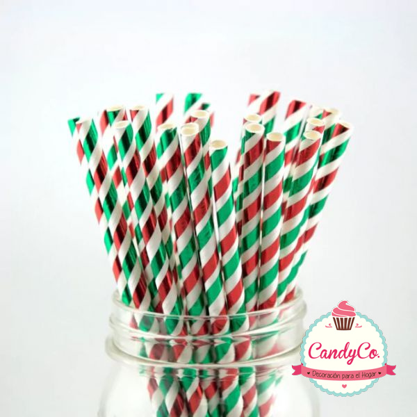 Sorbetes de Papel Biodegradables Reciclables Verde, Blanco, y Rojo Metalizado Navidad X1