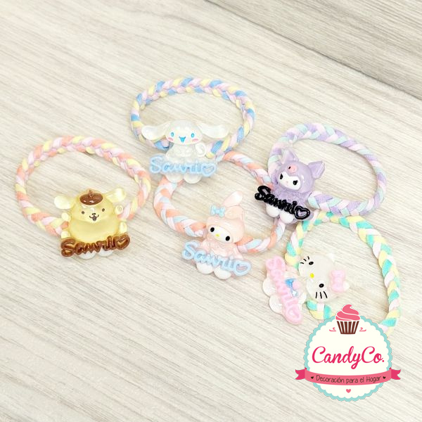 Colita Trenzada, Rayada con Muñeco de Silicona Personaje de Sanrio, Hello Kitty, Kuromi, Conejo My Melody, Cinnamonroll, Pompompurin, Perro Pochacco