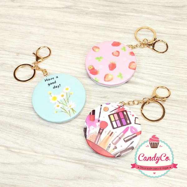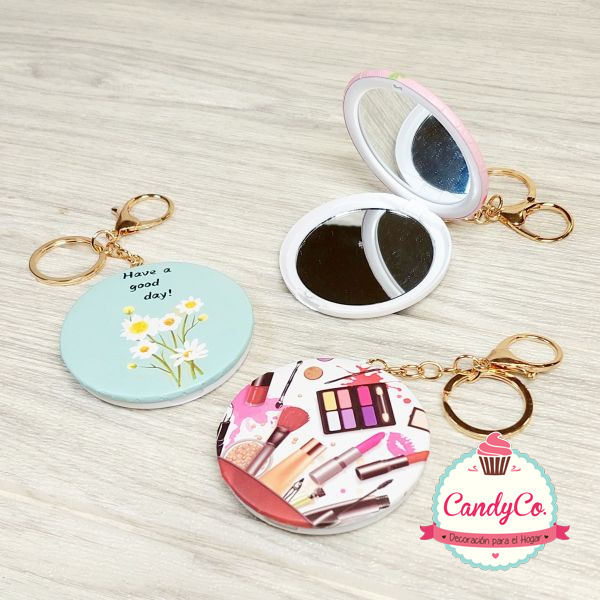 Llavero Espejo Redondo Doble Estampado