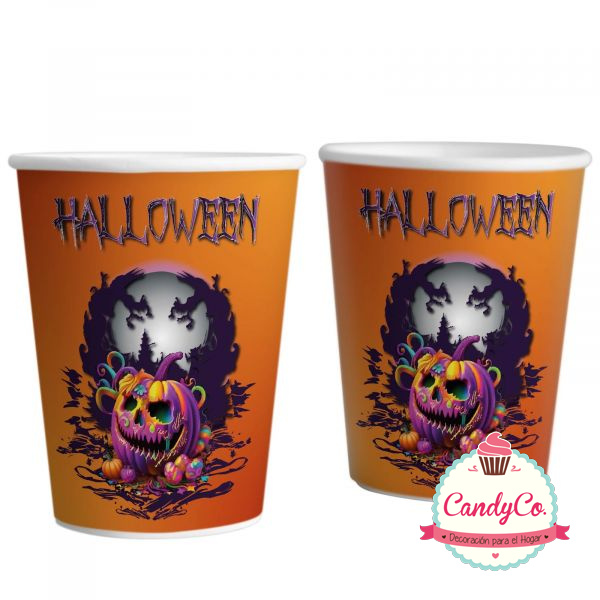 Vasos Descartables con Diseño de Halloween Naranja X8