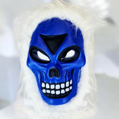 Máscara de Goma Eva y Pelo Calavera Azul y Blanca