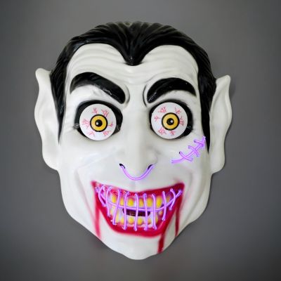 Máscara de Plástico Vampiro Drácula con Ojos Saltarines y Luces Led a Pilas