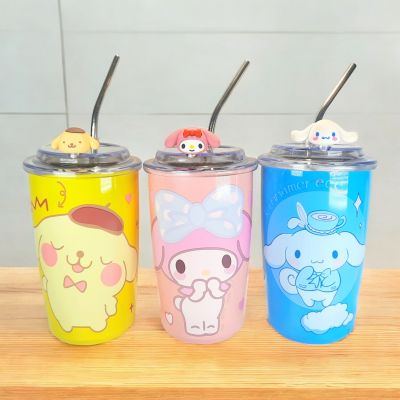 Vaso, Jarro Térmico con Correa de Silicona, Sorbete y Muñeco de Silicona Diseño de Sanrio, Hello Kitty, Cinnamoroll, Kuromi, My Melody