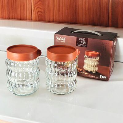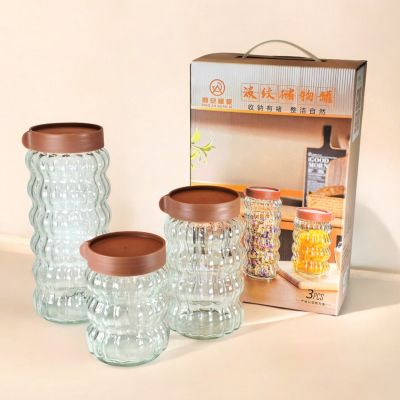 Set de Frascos de Vidrio X3 con Diseño de Ondas 500Ml, 800Ml, 1200Ml