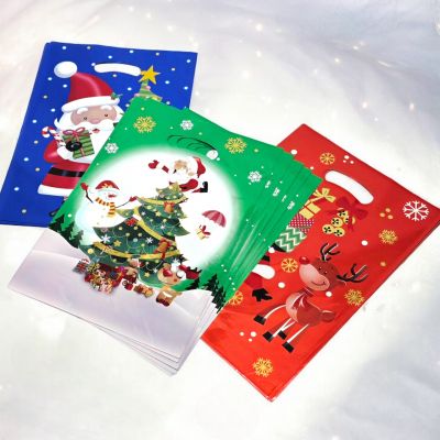 Set de Bolsas de Regalo de Plástico X10 Estampadas con Diseño de Navidad 25X17Cm