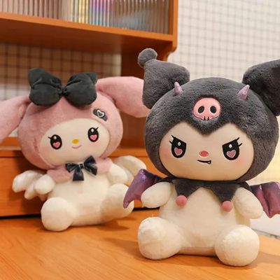 Peluche de Kuromi con Cuernos y Alas de Demonio, My Melody con Alas de Ángel 30Cm