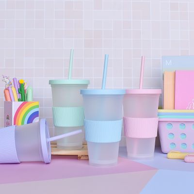 Vaso de Plástico Transparente con Faja, Tapa y Sorbete Pastel