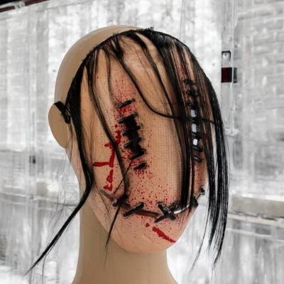 Máscara de Plástico Creepy Cosida con Pelo