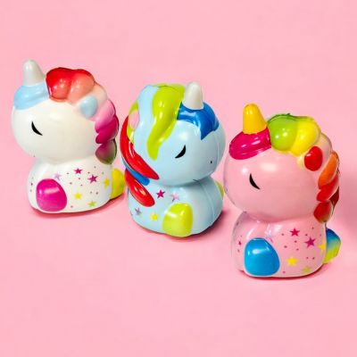 Squishy Anti Estrérs con Forma de Unicornio con Estrellas y Pelo Multicolor