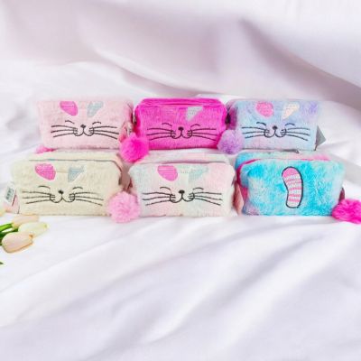 Portacosméticos de Peluche con Diseño de Gato con Orejas con Lentejuelas y Pompón