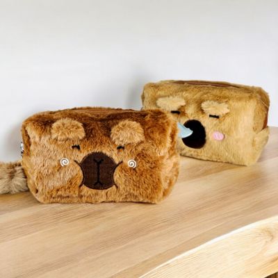 Portacosméticos de Peluche con Diseño de Carpincho, Capybara, Capibara y Pompón
