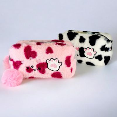 Portacosméticos de Peluche con Manchas y Diseño de Pata, Huella Biu Biu y Pompón
