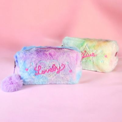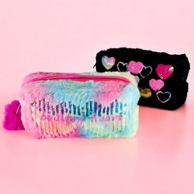 Portacosméticos de Peluche Multicolor con Diseño de Corazones Beating Heart Lentejuelas y Pompón