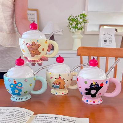 Taza de Cerámica Estampada Diseño Sanrio con Tapa con Muñeco de Silicona y Cuchara