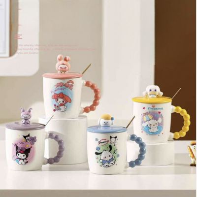 Taza de Cerámica Estampada con Diseño de Kuromi con Tapa con Muñeco de Silicona y Cuchara