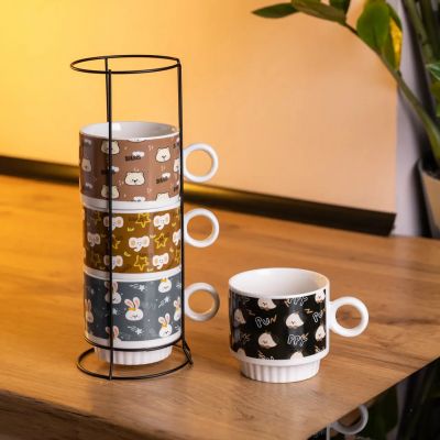 Set de Tazas X4 Apilables con Diseño de Animales, Perro, Conejo, Oso, Elefante