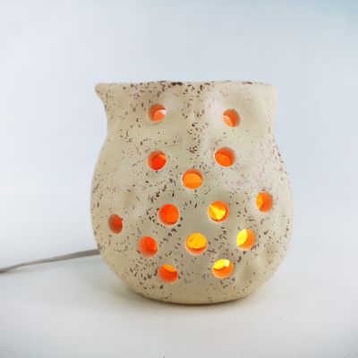 Lámpara de Sal de Madera con Diseño de Mandala y Corazones Om