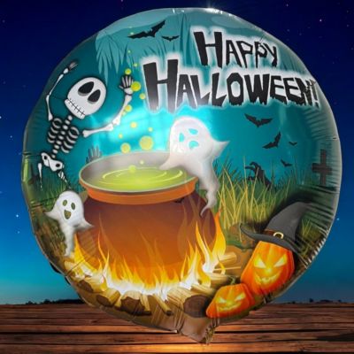 Globo Redondo con Diseño de Caldero, Fantasmas, Esqueleto, Happy Halloween 45Cm