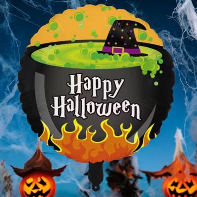 Globo Redondo con Diseño de Caldero y Sombrero de Bruja Happy Halloween 45Cm