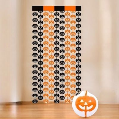 Cortina de Fiesta Halloween Calabazas Naranjas y Negras 2X1M