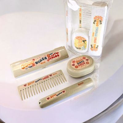 Set de Viaje con Peine, Porta Cepillo de Dientes, Jabonera, y Cartuchera en Estuche Transparente Cachita