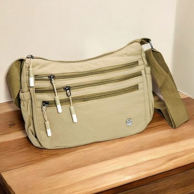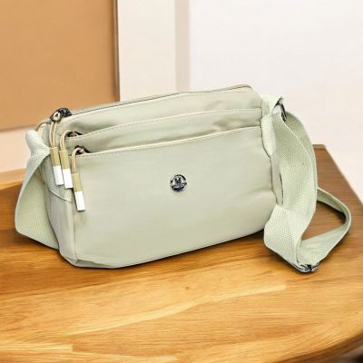 Bandolera, Morral Liso con 4 Cierres Horizontales y Detalle Plateado Letra M Fashion