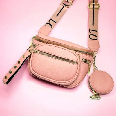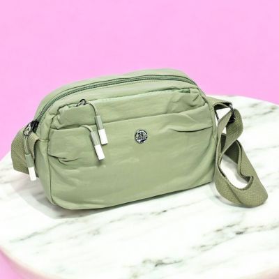 Bandolera, Morral Liso con 5 Cierres Horizontales y Detalle Plateado Letra M Fashion