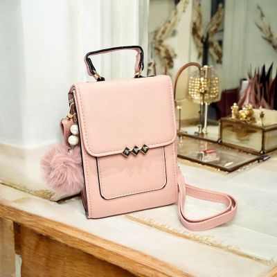 Bolso Cartera Grande con Bolsillos con Correa, Mostacillas, y Pompón con Orejas
